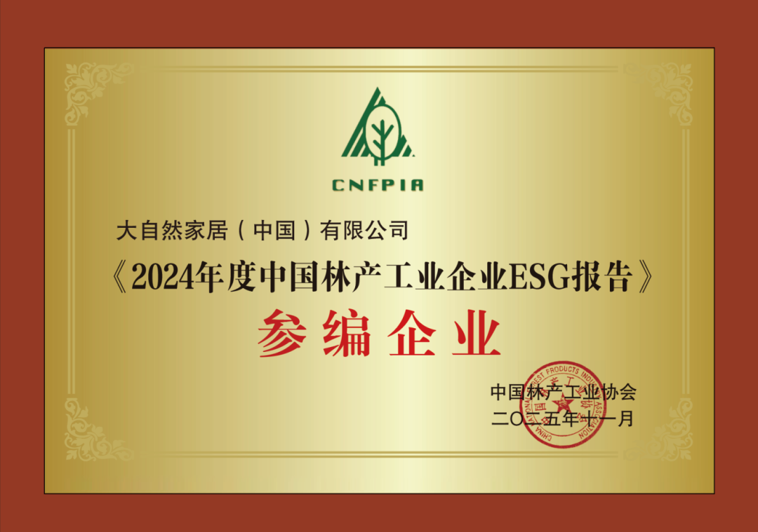 11 月 12 日,2025 全球飾面大會(huì)隆重召開(kāi),大自然家居應(yīng)邀參會(huì),與近千家名企共話(huà)行業(yè)發(fā)展趨勢(shì)、分享創(chuàng)新成果。會(huì)上,由中國(guó)林產(chǎn)工業(yè)協(xié)會(huì)主導(dǎo)的《2024 年度中國(guó)林產(chǎn)工業(yè)企業(yè)ESG報(bào)告》正式發(fā)布,大自然家居憑借突出貢獻(xiàn)獲頒參編證書(shū),并在會(huì)上同步推出《大自然家居 2024 年社會(huì)責(zé)任報(bào)告》,全面展現(xiàn)企業(yè)在綠色發(fā)展、社會(huì)責(zé)任等領(lǐng)域的實(shí)踐與成效。