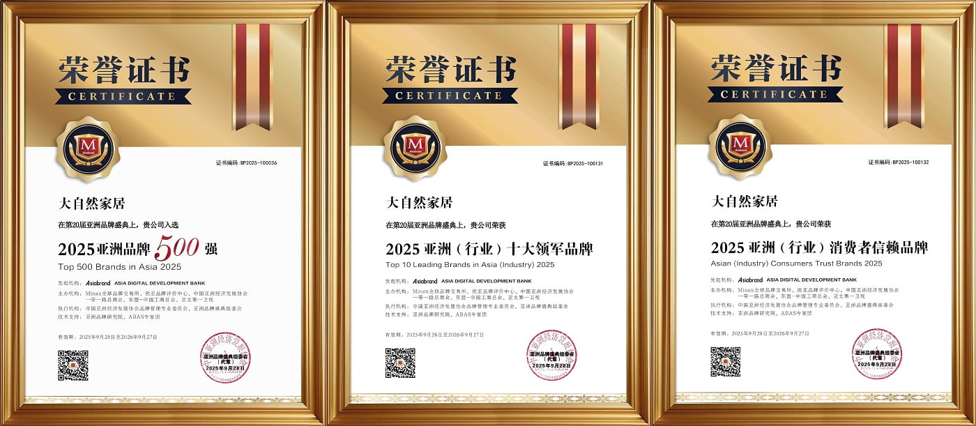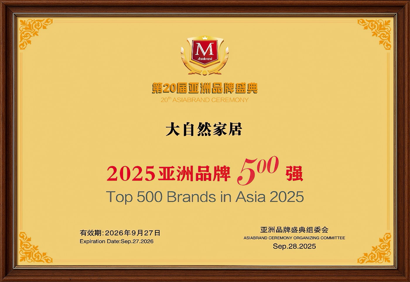 同時(shí),憑借深厚的品牌積淀與卓越的市場(chǎng)表現(xiàn),大自然家居躋身亞洲品牌500強(qiáng),這份榮譽(yù)是品牌實(shí)力的硬核見(jiàn)證,更是千萬(wàn)消費(fèi)者口碑的長(zhǎng)期沉淀,成為品牌穿越周期的堅(jiān)實(shí)底氣。